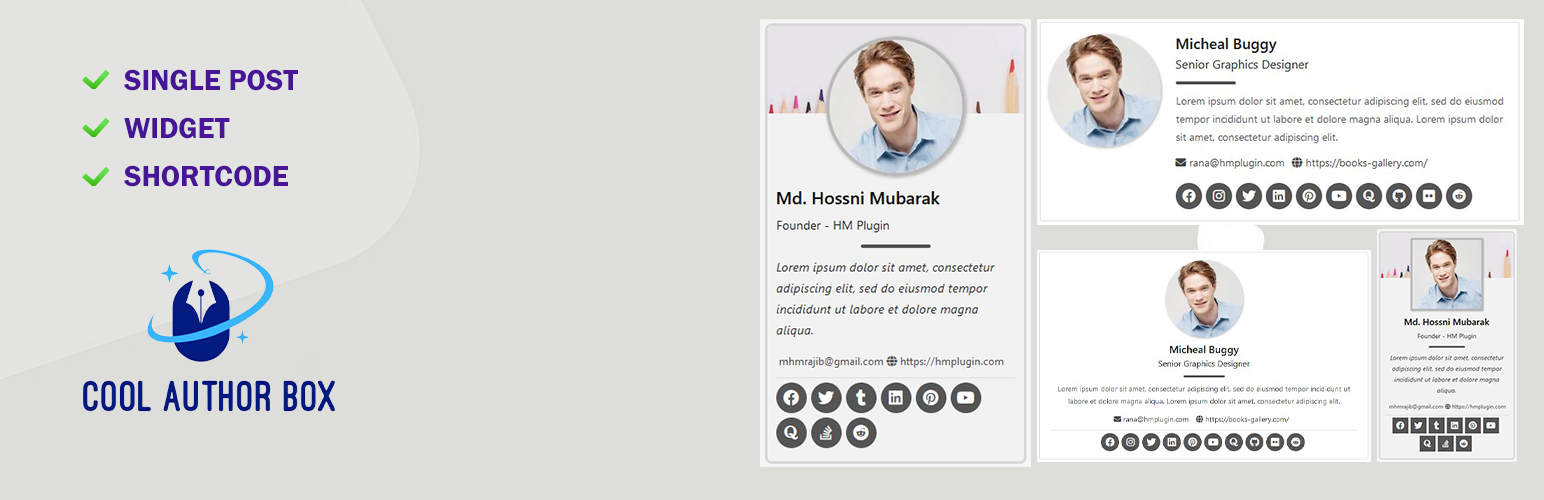 Cool Author Box is the WordPress Author Box Plugin that displays a responsive author box to your theme widget area or in a single post with social media links. You can use your personal info with gravatar or uploaded image. 12 common social links help you to connect with more people.